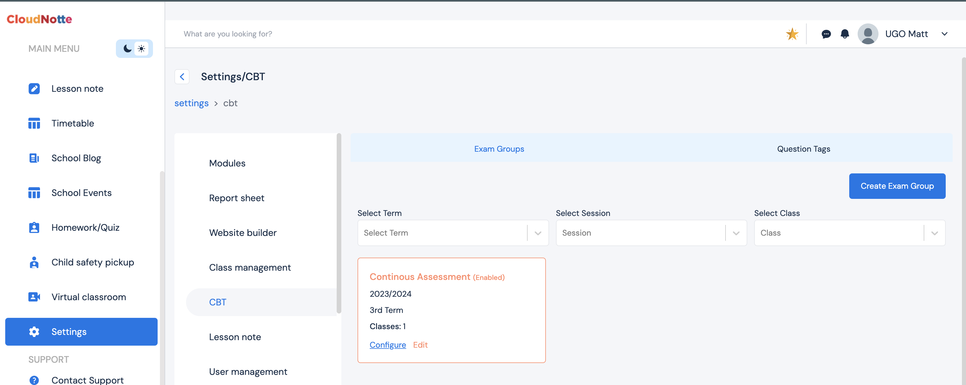 Click on the configure under the exam group you want to configure.