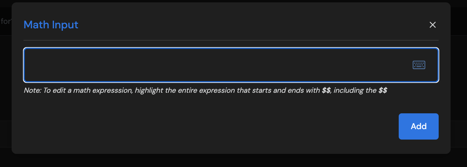 Its pretty simple to use, just play around with it and once done, click on the add button to add it to your question input.